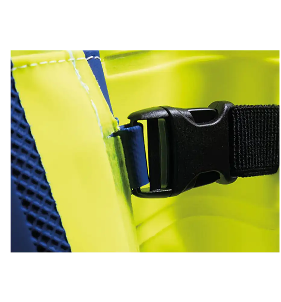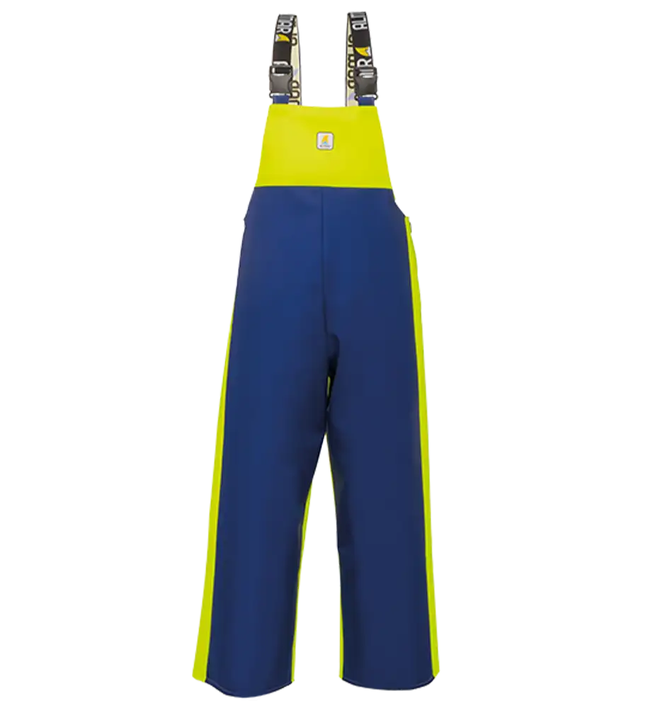 Confeccionado en tejido MIX, compuesto por poliéster flexible extra resistente al desgaste y recubierto de PVC por una cara. Ofrece alta resistencia a grasas y aceites, excelente durabilidad en entornos profesionales exigentes y comportamiento óptimo a bajas temperaturas. Diseño en alta visibilidad azul y amarillo flúor. Fabricación en España.